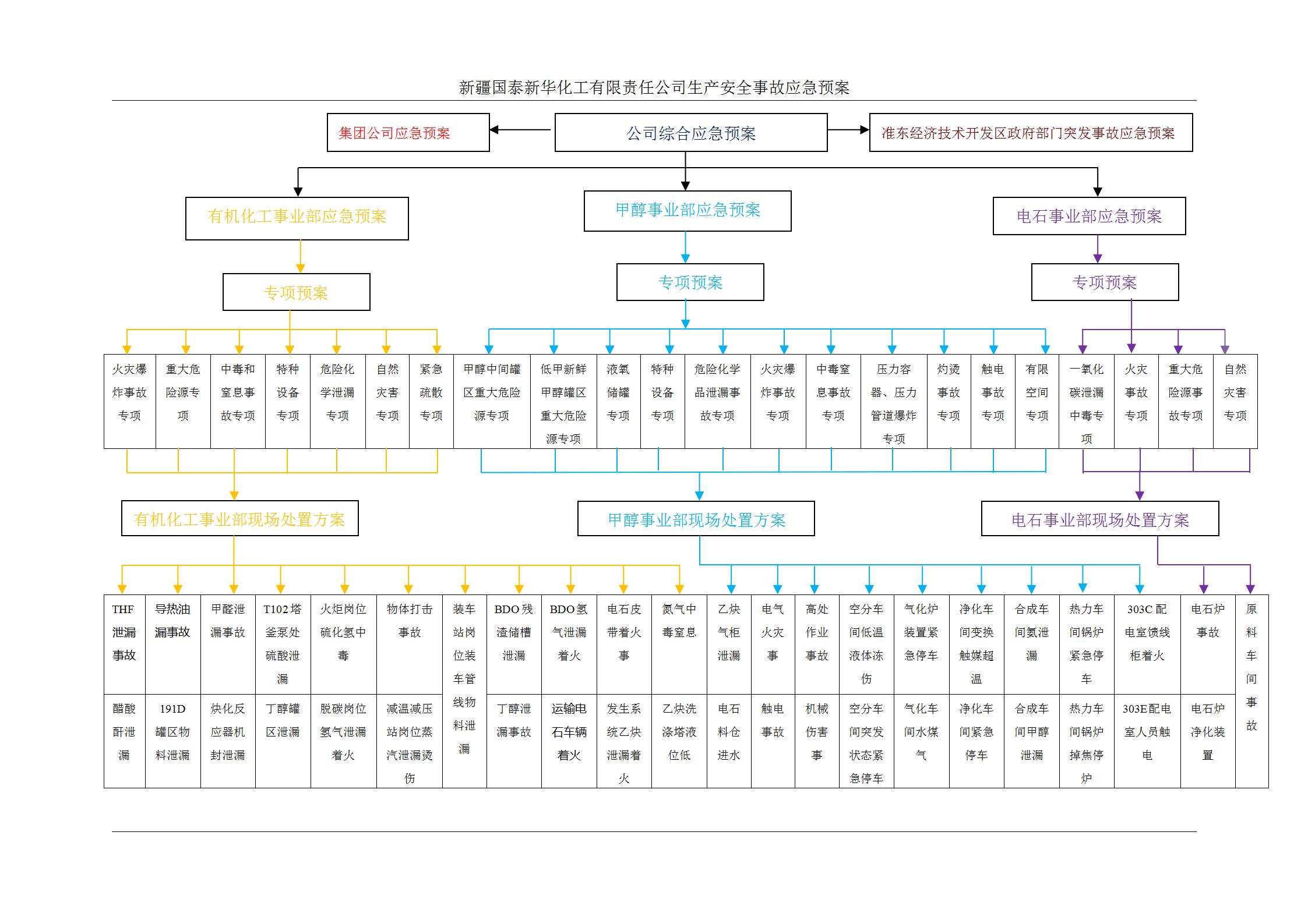 本预案适用于新疆国泰新华化工有限责任公司在生产、经营过程中应对可能发生的各类安全事故,主要包括各事业部发生的火灾、爆炸、机械伤害、中毒和窒息、触电、灼烫、高处坠落等事故的应急抢险救援和处置工作。