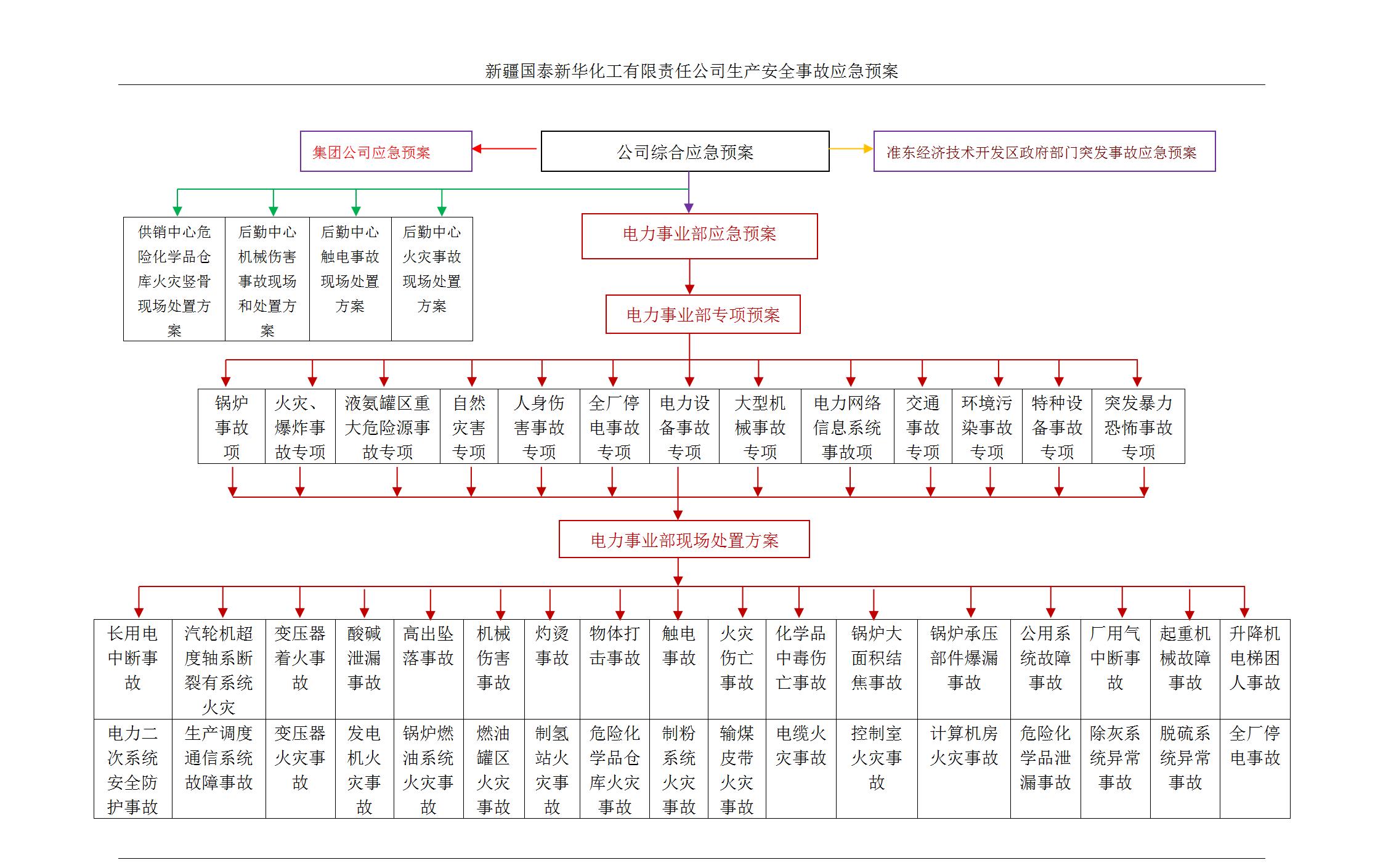 为提高广大员工对生产安全安全事故的处理能力,在事故发生时,能够科学、快速、有效地效组织实施救援,最大限度地避免人员的伤亡,减少财产损失,确保人员生命安全及企业稳定发展,依据《中华人民共和国安全生产法》、《生产安全事故应急条例》、《生产安全事故应急预案管理办法》(应急管理部第2号令)等法律法规,结合公司安全生产实际情况,按照《生产经营单位生产安全事故应急预案编制导则》GB/T29639-2020,对《新疆国泰新华化工有限责任公司生产安全事故综合应急预案》等预案进行了修订,现予以发布,自 2021年 11 月26日起在本公司范围内正式实施。望各部门负责人认真组织本部门人员学习,严格遵守执行。